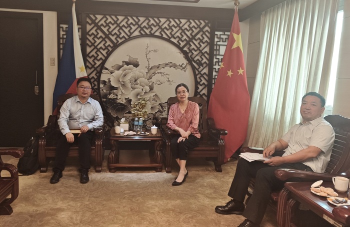 1月13日,驻宿务总领事张瑱会见菲律宾中资企业总商会宿务分会秘书长王军,宋金培领事、刘铭洋三等秘书陪同。